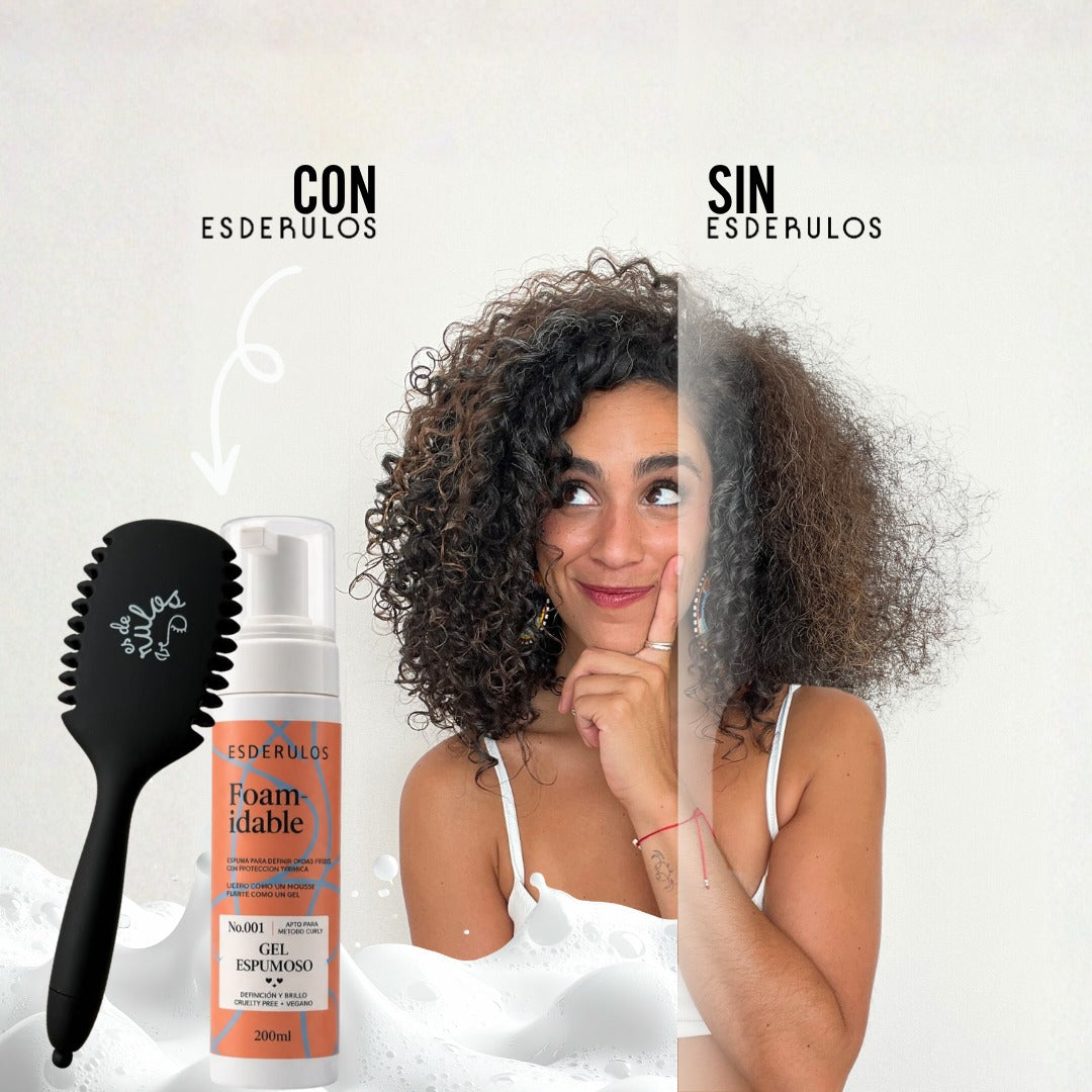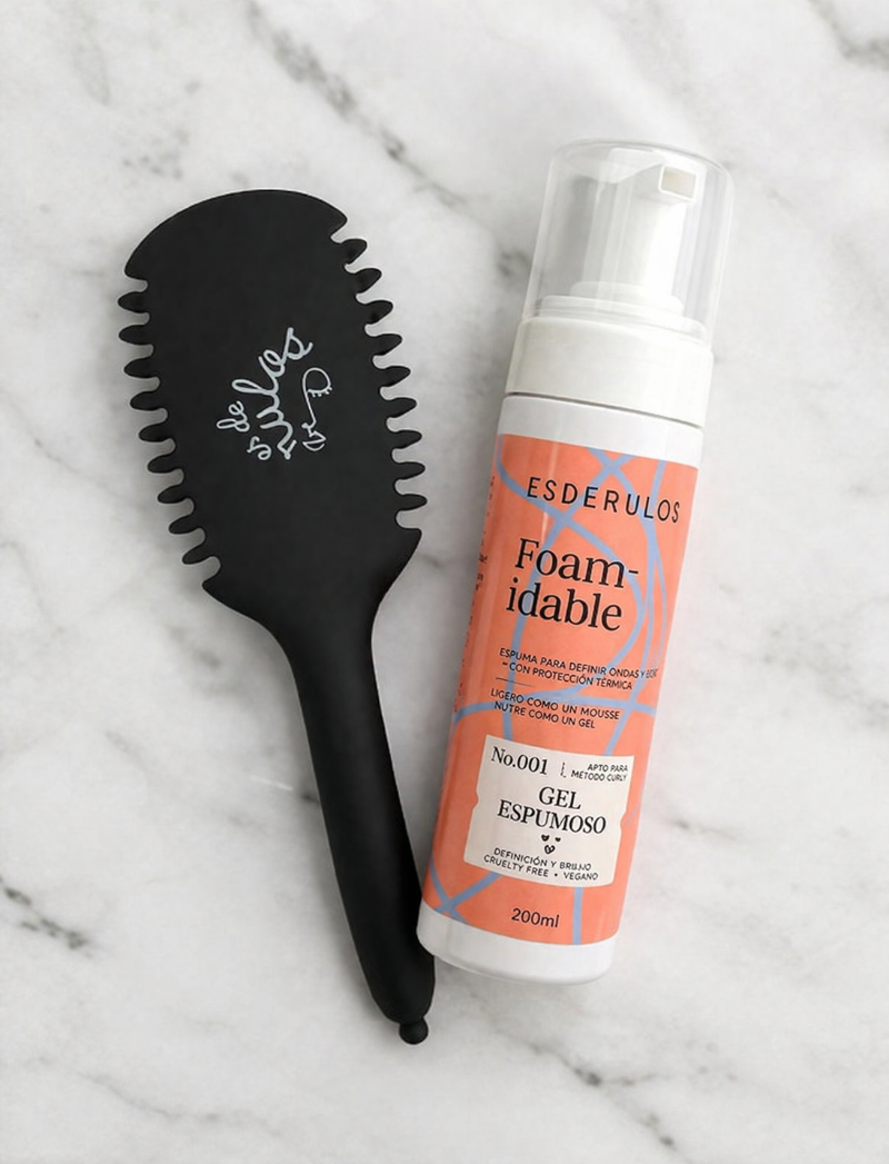 Cepillo Esderulos: El cepillo te ayuda a desenredar el pelo, distribuir los productos de manera uniforme y formar mejor los rulos durante la definición.